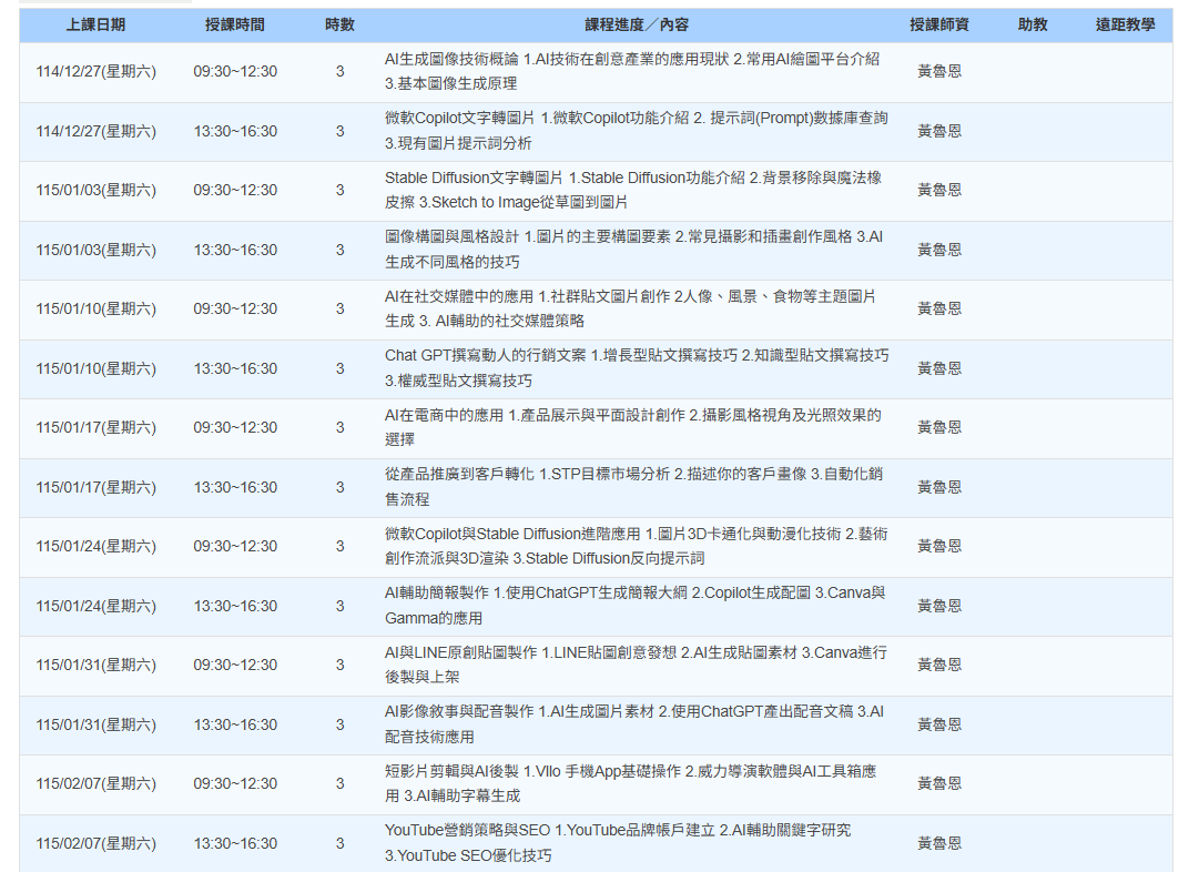 新北(週六)166243 生成式AI圖像生成與網路行銷班第02期
