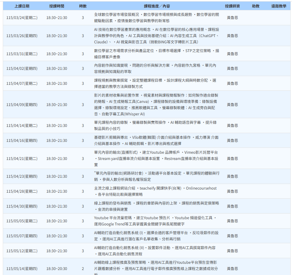 台北(週二、周四)169859 線上課程規劃錄製暨自動化行銷實務班第01期