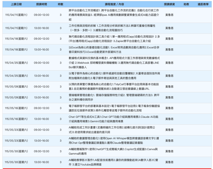 新北(週六)169858知識型工作者AI無代碼工作流程自動化實作班第01期